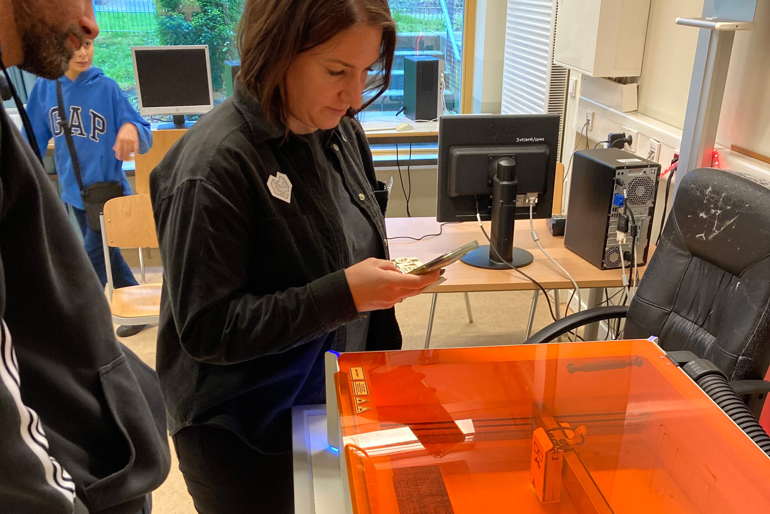 Wie Making und Schule zusammengebracht werden können, erfuhren die Teilnehmenden dann am nächsten Tag in der Stadtteilschule Stübenhofer Weg. Die Gemeinschaftsschule in Hamburg-Wilhelmsburg verbindet ein breites Bildungsangebot mit innovativen Lernansätzen wie dem projektbasierten Lernen. Der Stübi-Makerspace spielt dabei eine zentrale Rolle und bietet Schüler*innen aller Altersstufen die Möglichkeit, mit Werkzeugen, Maschinen und digitalen Technologien praktisch zu arbeiten. Der Makingspace ist das Herzstück des Konzepts „Maker Education“ an dieser Schule. Hier lernen Schüler*innen kreativ zu tüfteln und eigenständig zu arbeiten. Gleichzeitig bietet er Raum für Berufsorientierung, inklusive Lernangebote und außerschulische Aktivitäten im Stadtteil.