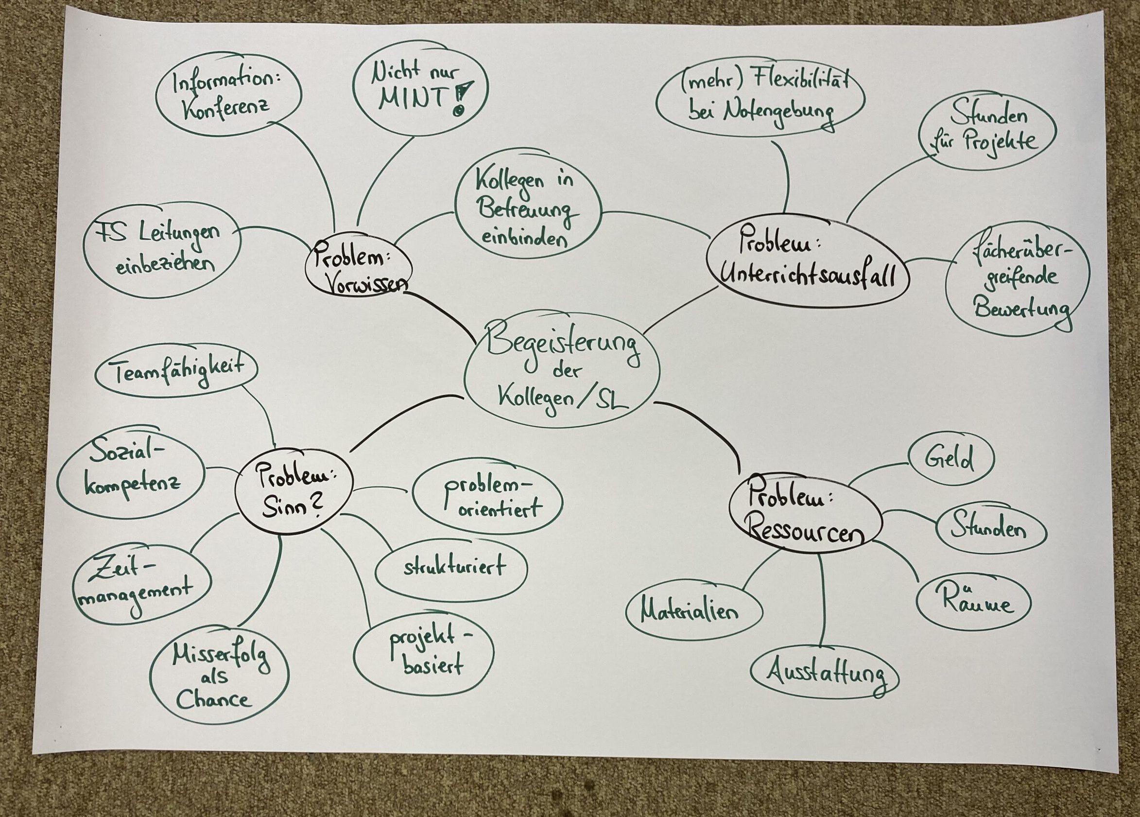Eine Gruppe plant sogar einen schuleigenen Makingspace. Die Teilnehmenden entwickelten eine Ideenskizze, die die Verantwortung der Lernenden für ihren Makingspace ins Zentrum rückt. In einem möglichst einzigartigen Raum sollen Schüler*innen und Lehrkräfte gemeinsame Projekte durchführen, um Selbstwirksamkeit zu erfahren. Partnerschaften mit Unternehmen, Ausbildungsbetrieben und Hochschulen sollen den Jugendlichen Einblicke in die Arbeitswelt geben und sie bei Studien- und Berufswahl unterstützen.